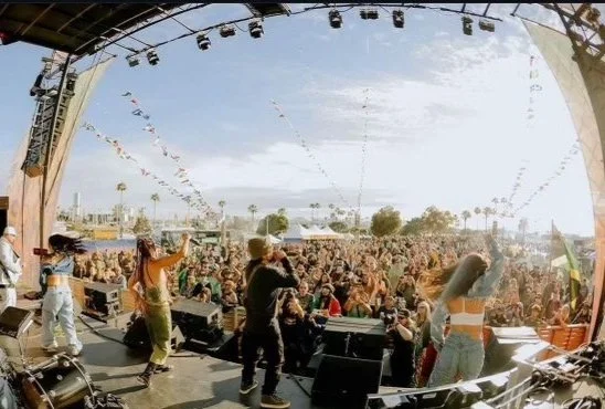 All the vibes of California were set! The culture of reggae music has taken over, so we installed all the flags of the Caribbean on the Boomyard Stage along with lighting.